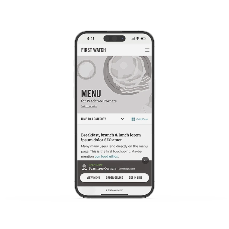 Our redesign for First Watch, a rapidly expanding fast-casual restaurant brand, drove a 6% increase in online revenue & 100K more daily visitors.