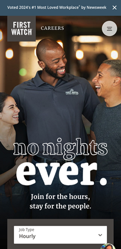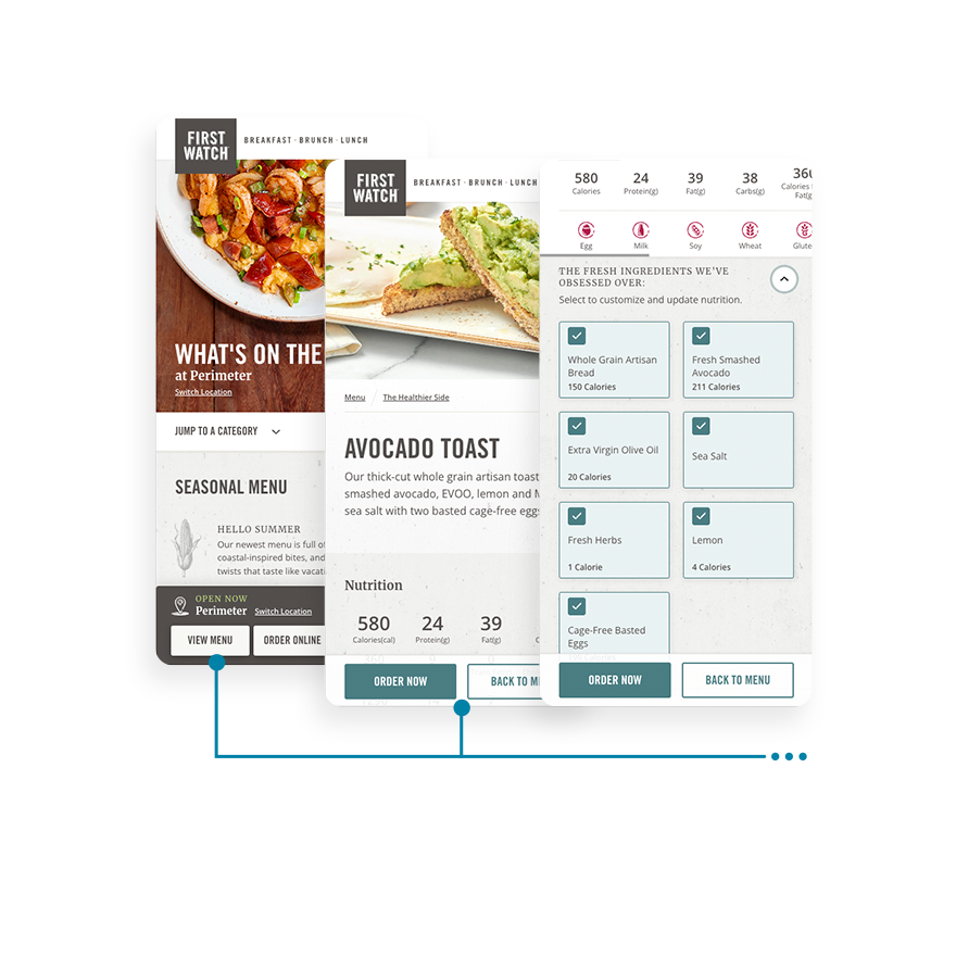 It was important to First Watch brand stakeholders that the look and feel best represent who they are: fresh, new and authentic. In our visual design phase, we did multiple iterations of core pages to capture the right look and message.